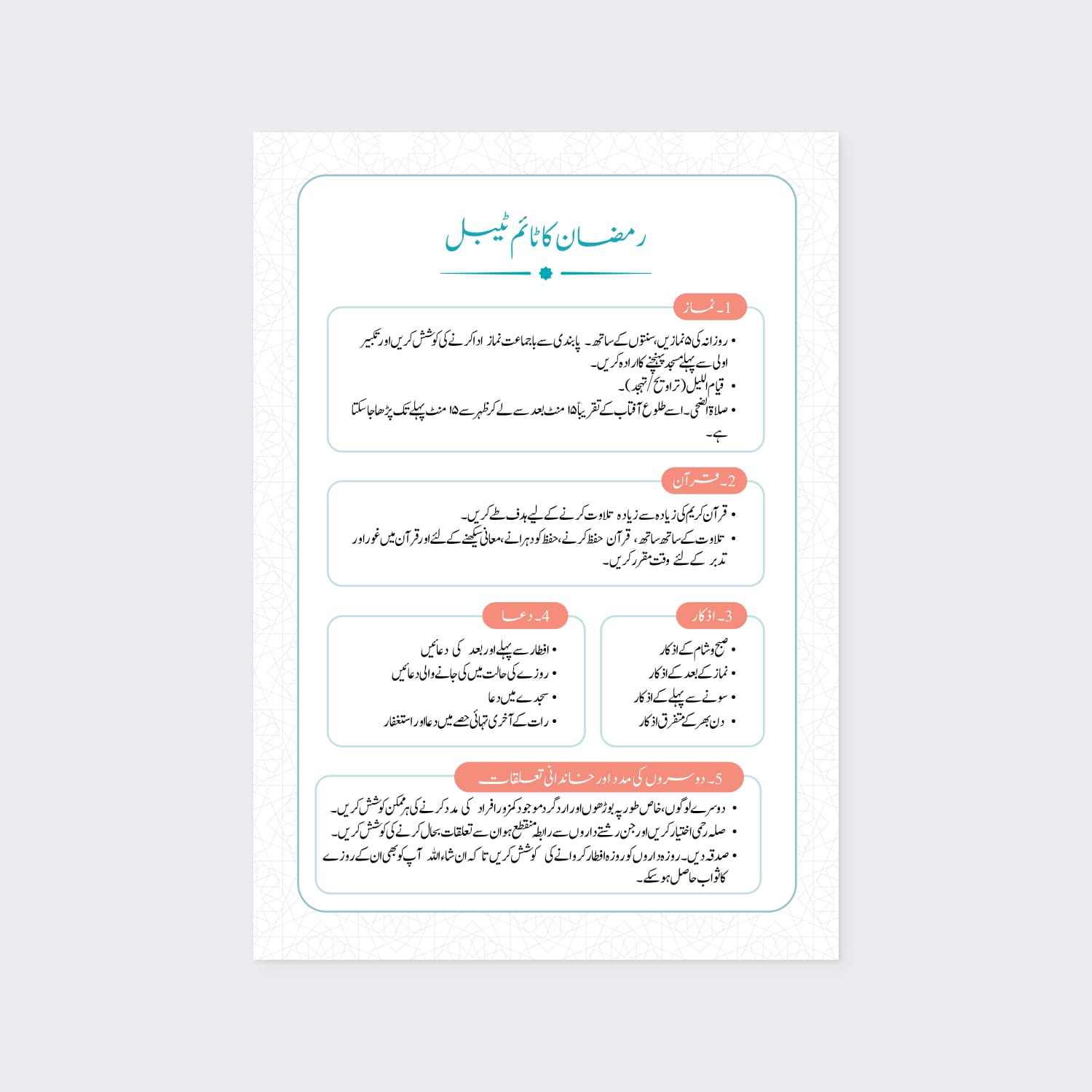 “رمضان کی۳۰ یاددہانیاں”
