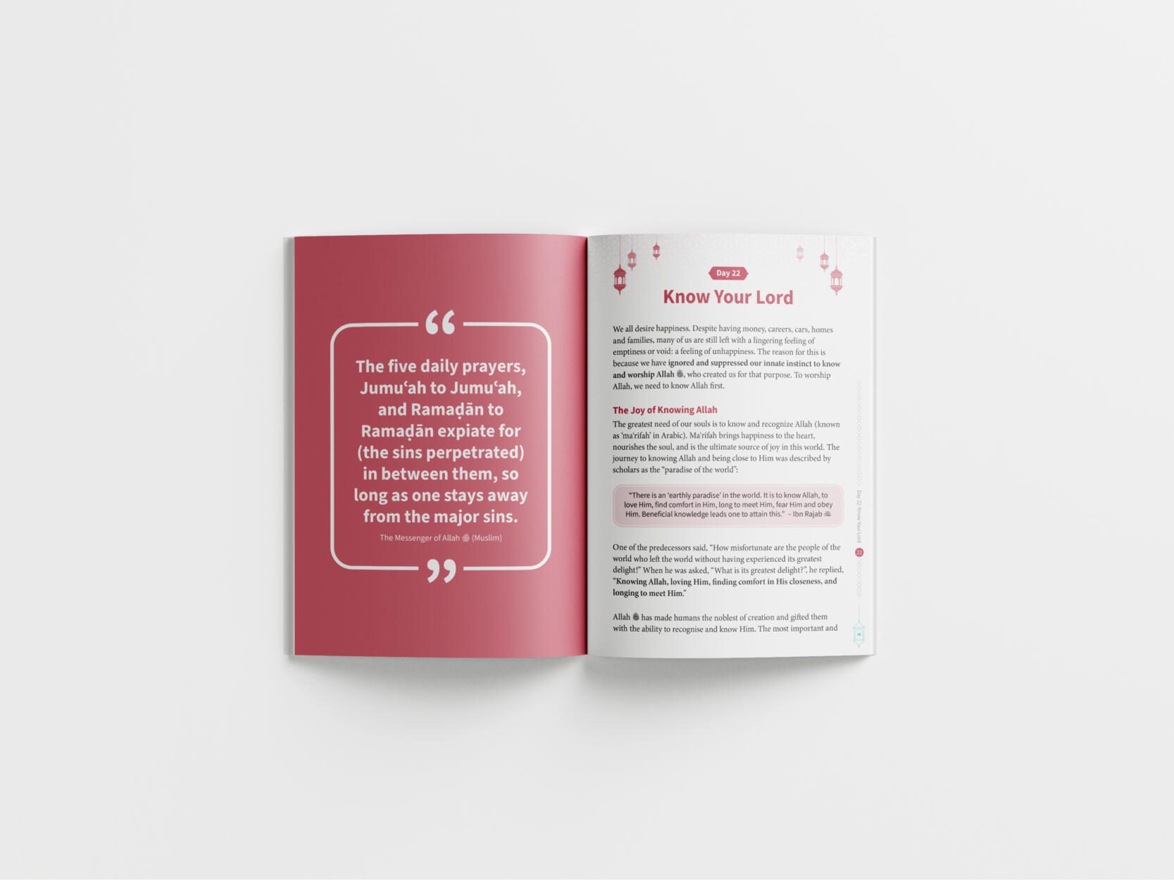 ‘My Ramadan Companion’ is a daily guide to help you deepen your relationship with Allah. It explores how you can strive to become His true servants, and strengthen your īmān. It helps you gain new habits, discard the bad ones, and truly transform your life. The book consists of 30 reminders, one for each day of Ramaḍān. Each section ends with prompts to ‘reflect and act’ which we pray you will find beneficial. It may be helpful for you to have a journal/notebook for the reflective exercises. We also recommend gathering your family for 5-10 minutes every day this Ramaḍān to read and reflect on the day’s reminder.